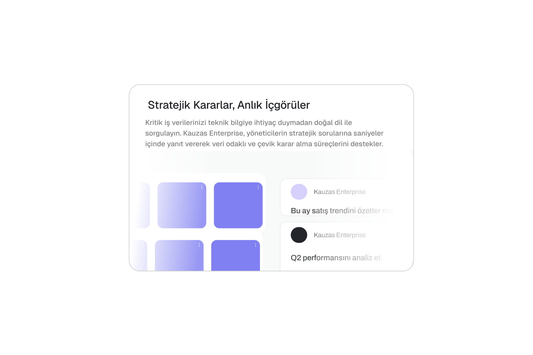Kauzas Enterprise, yöneticilerin ihtiyaç duyduğu kritik iş verilerini teknik bilgi gerektirmeden doğal dil ile sorgulamasını mümkün kılar.